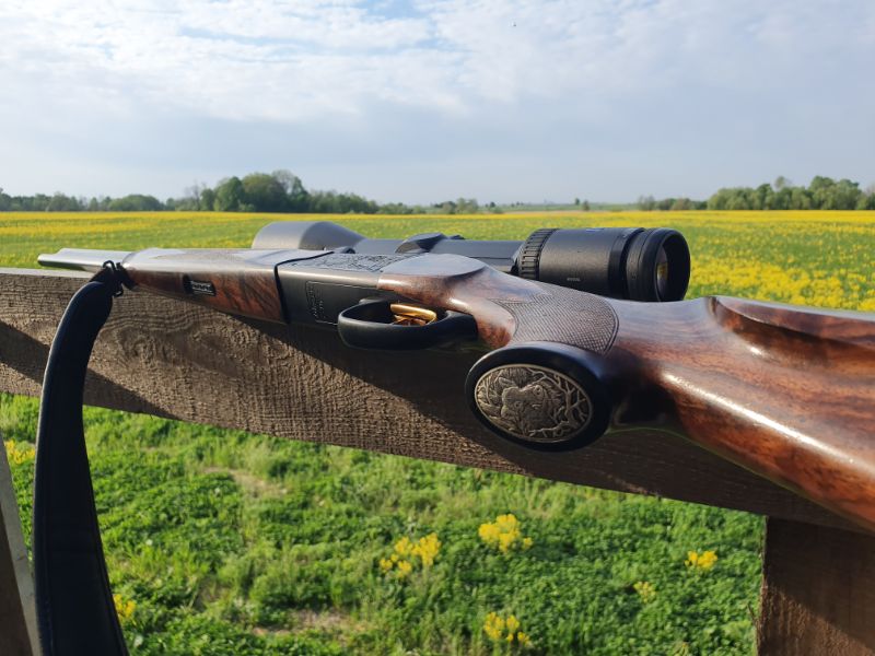 Medžioklės ginklas gali būti gražus. Ir kalbame ne tik apie reljefinius gyvūnų atvaizdus ant ginklo uokso ar poliruoto riešutmedžio buožės. Gražus ginklas yra patogus, patikimas, elegantiškų formų, dalys sutampa šimtosios milimetro dalies tikslumu, tad jis yra labai tikslus! Šio Blaser ginklo modelio vamzdžiai yra keičiami.
