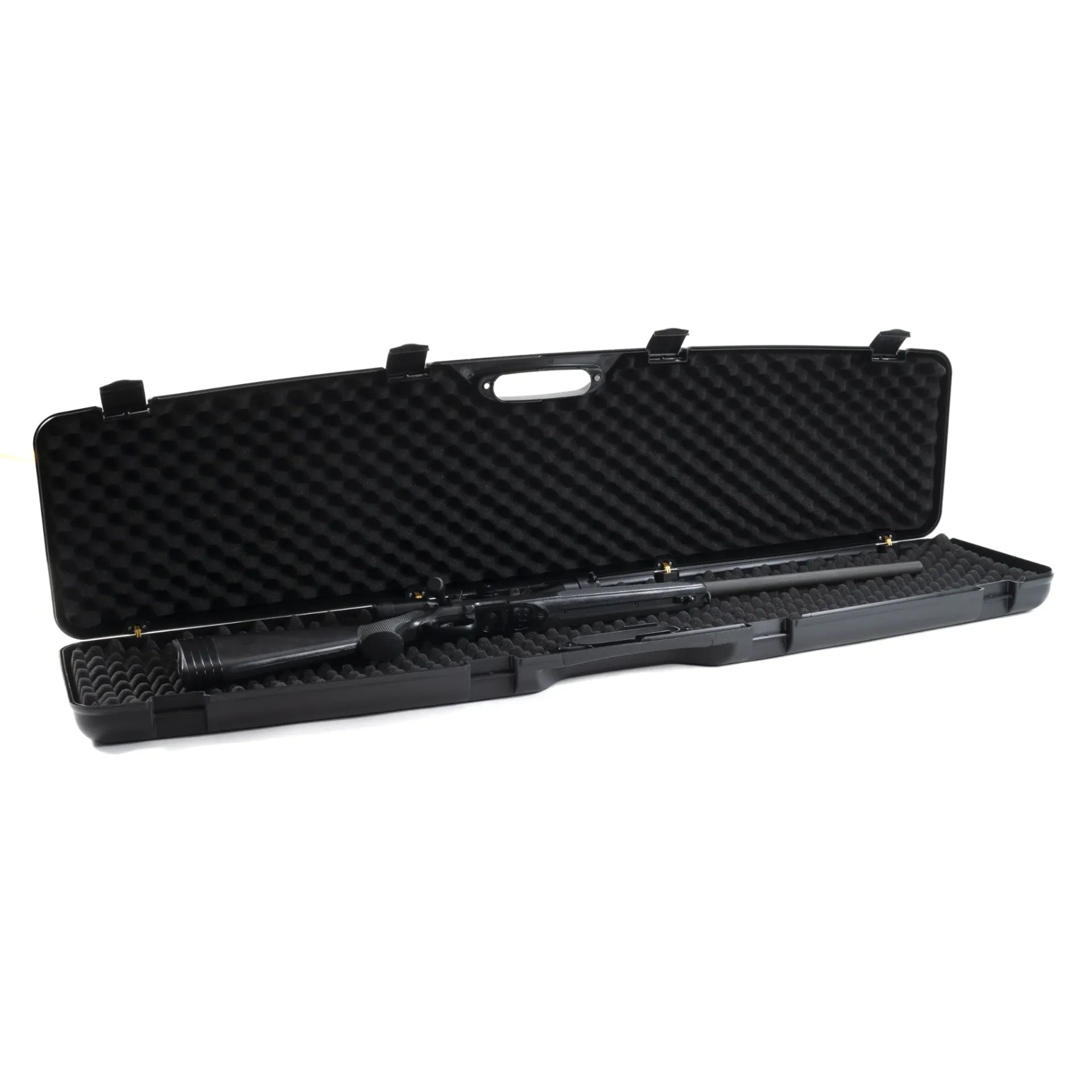 dėklas su tekstūruotu putplasčio vidumi, sukurtas užtikrinti aukščiausio lygio apsaugą. Įrengtas su 4 užraktais saugiam uždarymui, juodos spalvos apdaila pabrėžia kompaktišką, rafinuotą ir modernų dizainą. Tvirtos ir patvarios konstrukcijos, puikiai tinkantis įvairiam naudojimui.